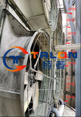 項目原采用的側出風冷卻塔,配備6葉片窄葉片高轉速風機,運行噪音較大,而且目前所有動力系統均出現嚴重腐蝕現象,原來出風口已經安裝消聲墻體,但低頻聲依然對周邊辦公及居住環境造成影響。